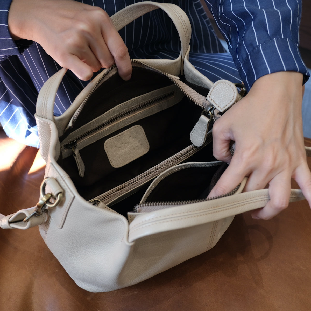 - ด้านในช่องกว้าง มีช่องซิปกั้นกลางกระเป๋าแบ่งด้านในออกเป็น 2 ช่องใหญ่