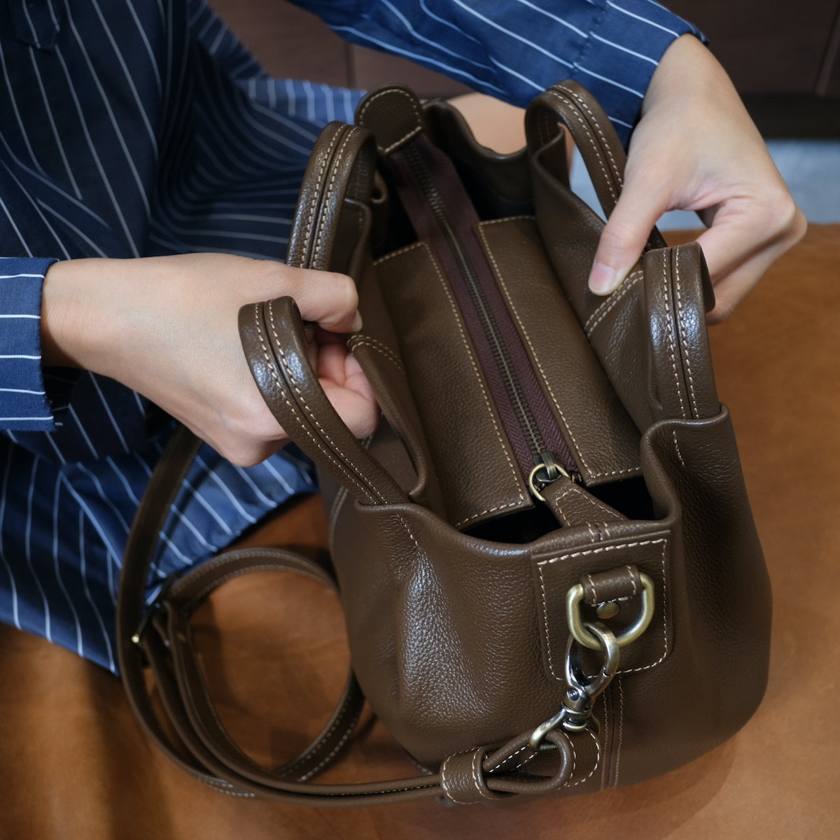 - ปากกระเป๋ามีซิปปิดเรียบร้อย