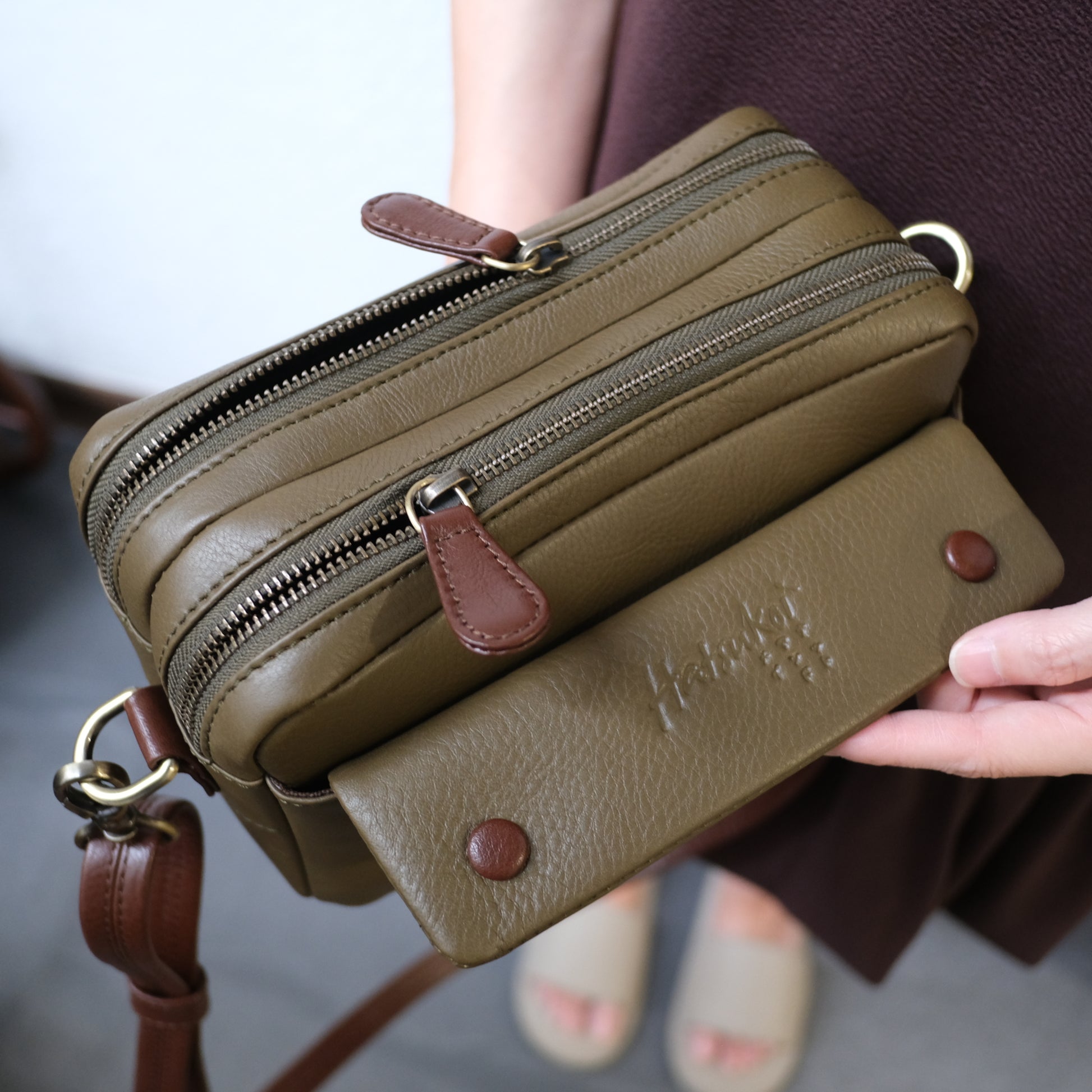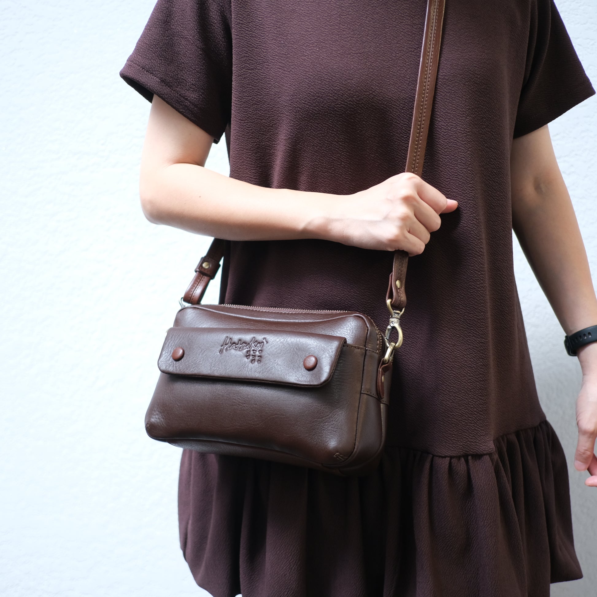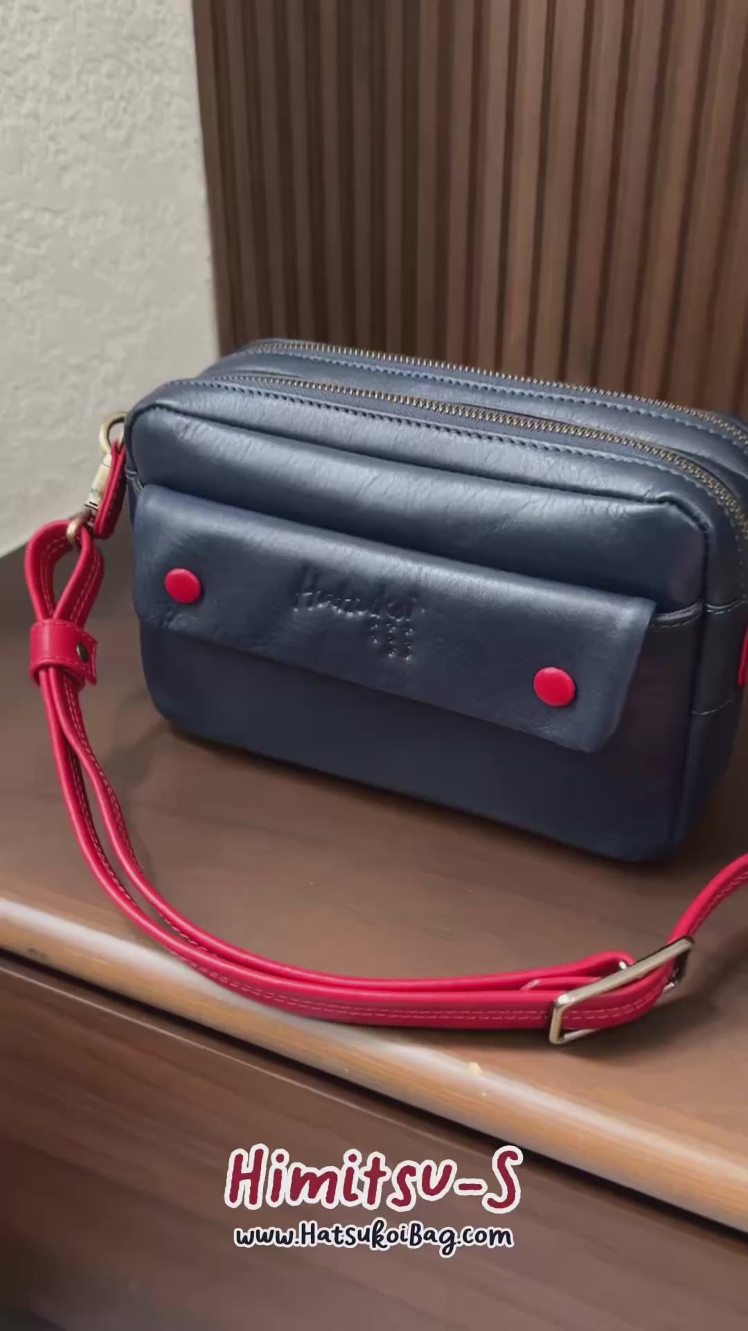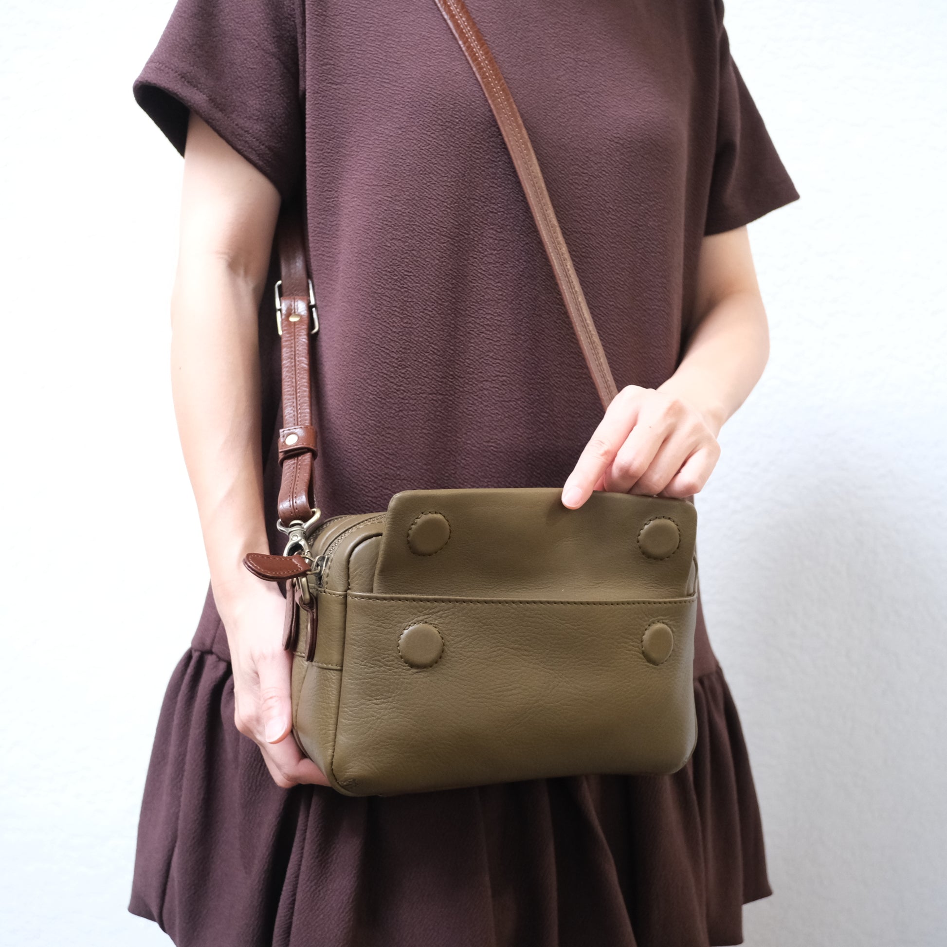 - ที่ฝากระเป๋าด้านหน้ามีดีเทลกระดุมหนัง เปิดปิดง่ายด้วยแม่เหล็กซ่อนด้านใต้ฝา