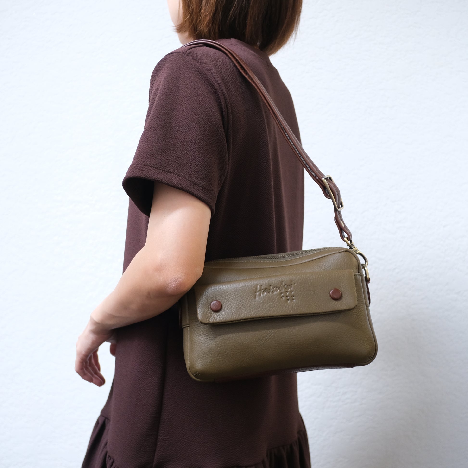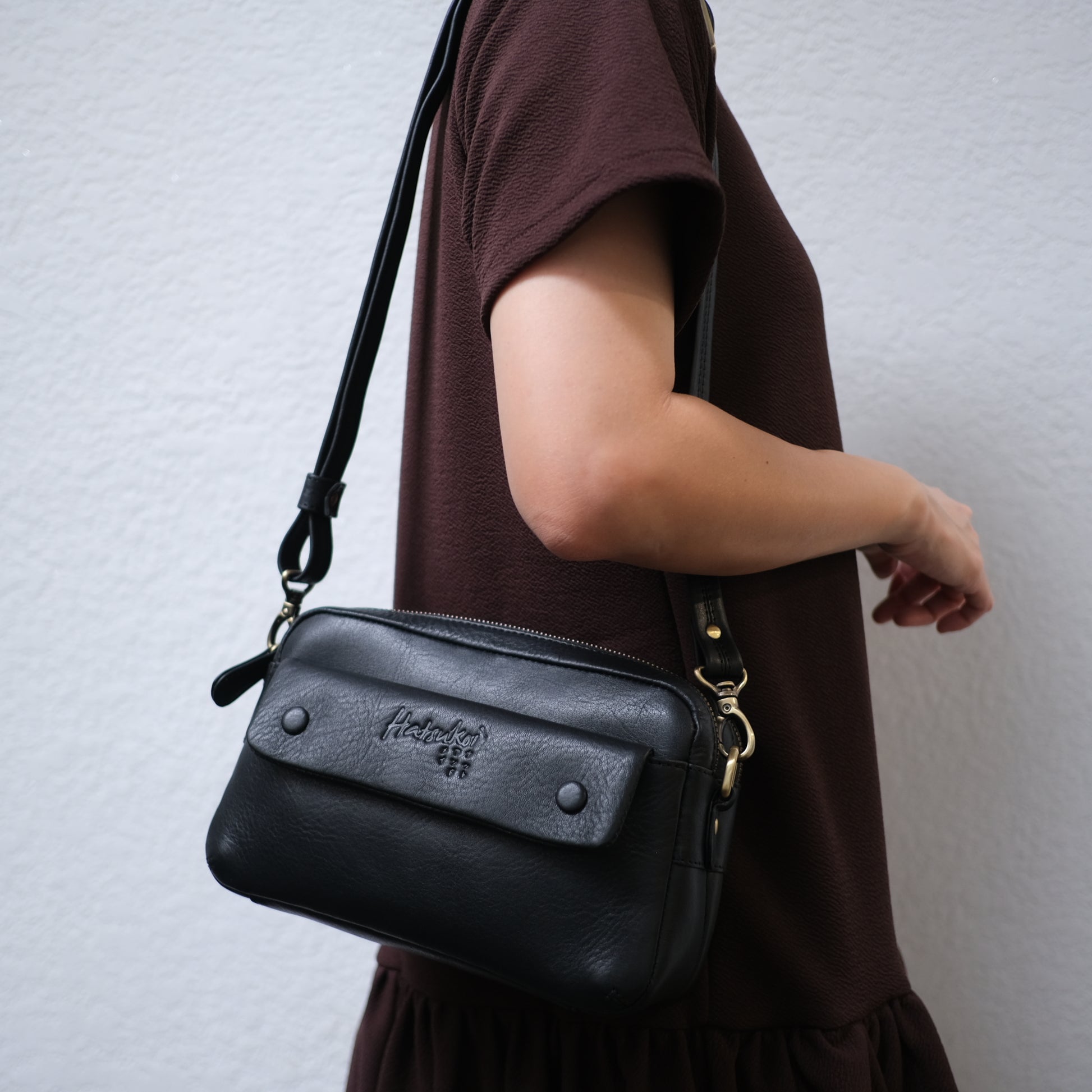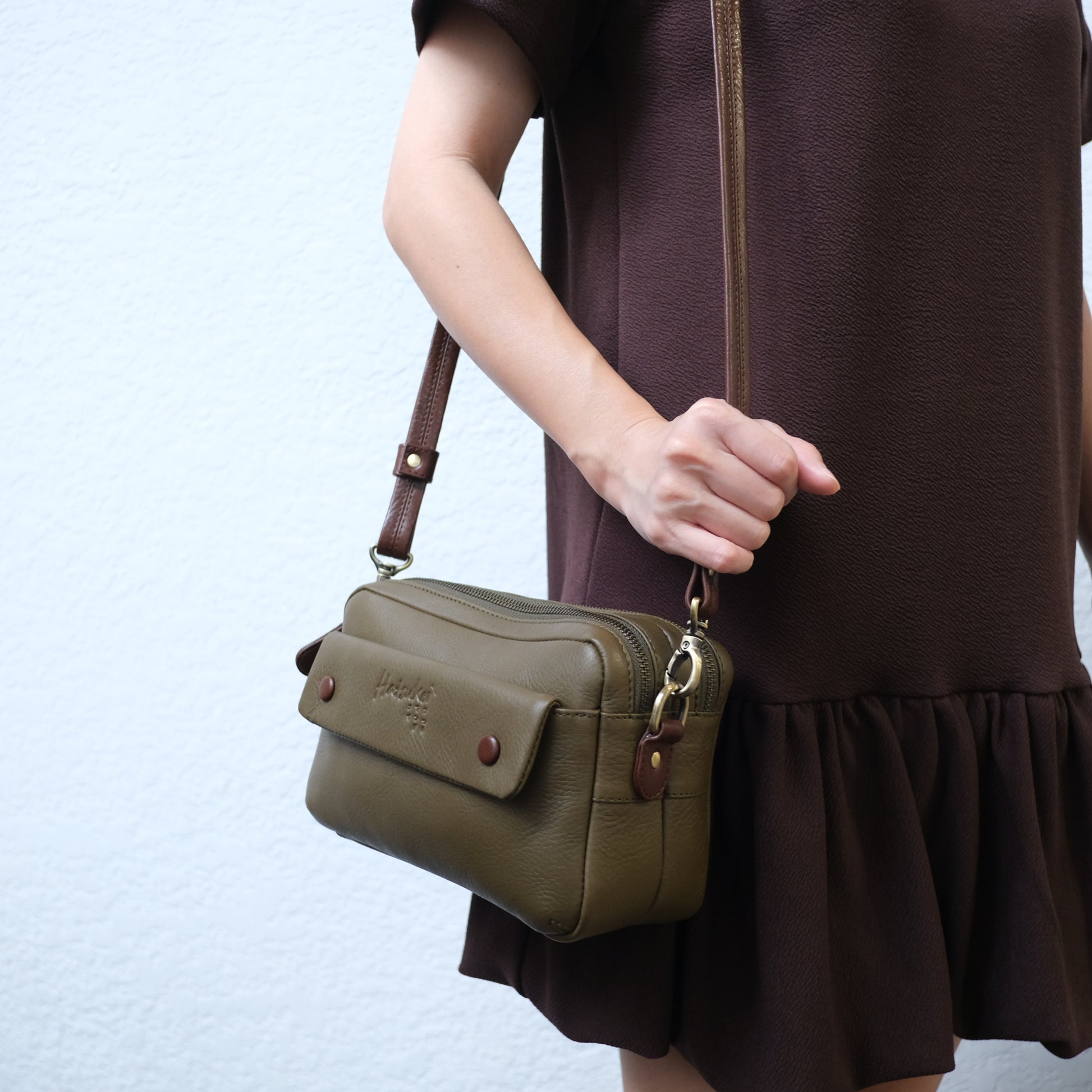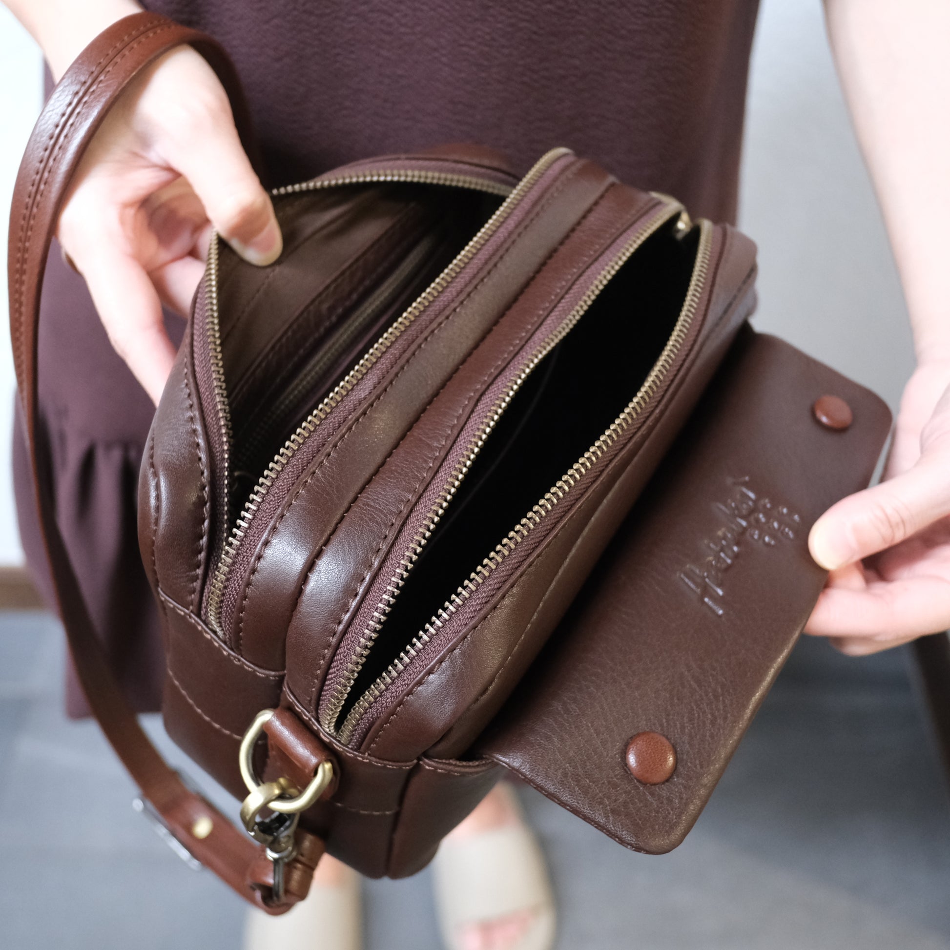 - ที่ฝากระเป๋าด้านหน้ามีดีเทลกระดุมหนัง เปิดปิดง่ายด้วยแม่เหล็กซ่อนด้านใต้ฝา