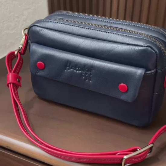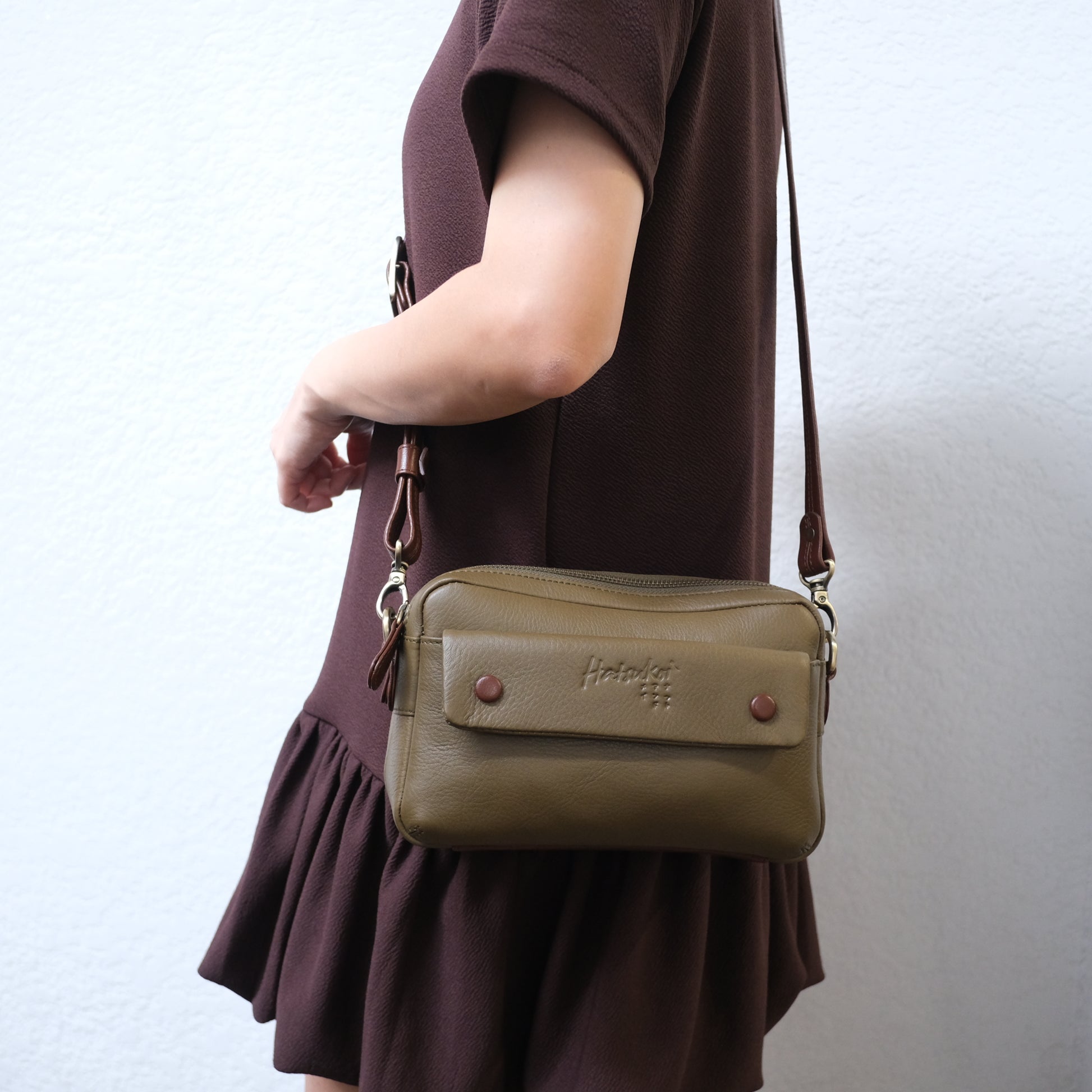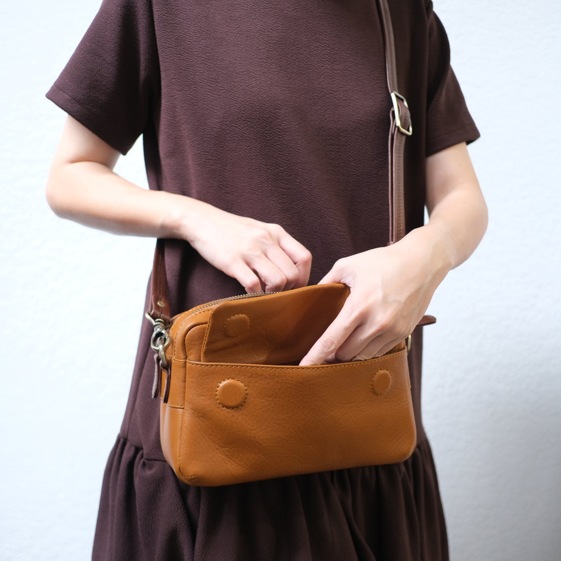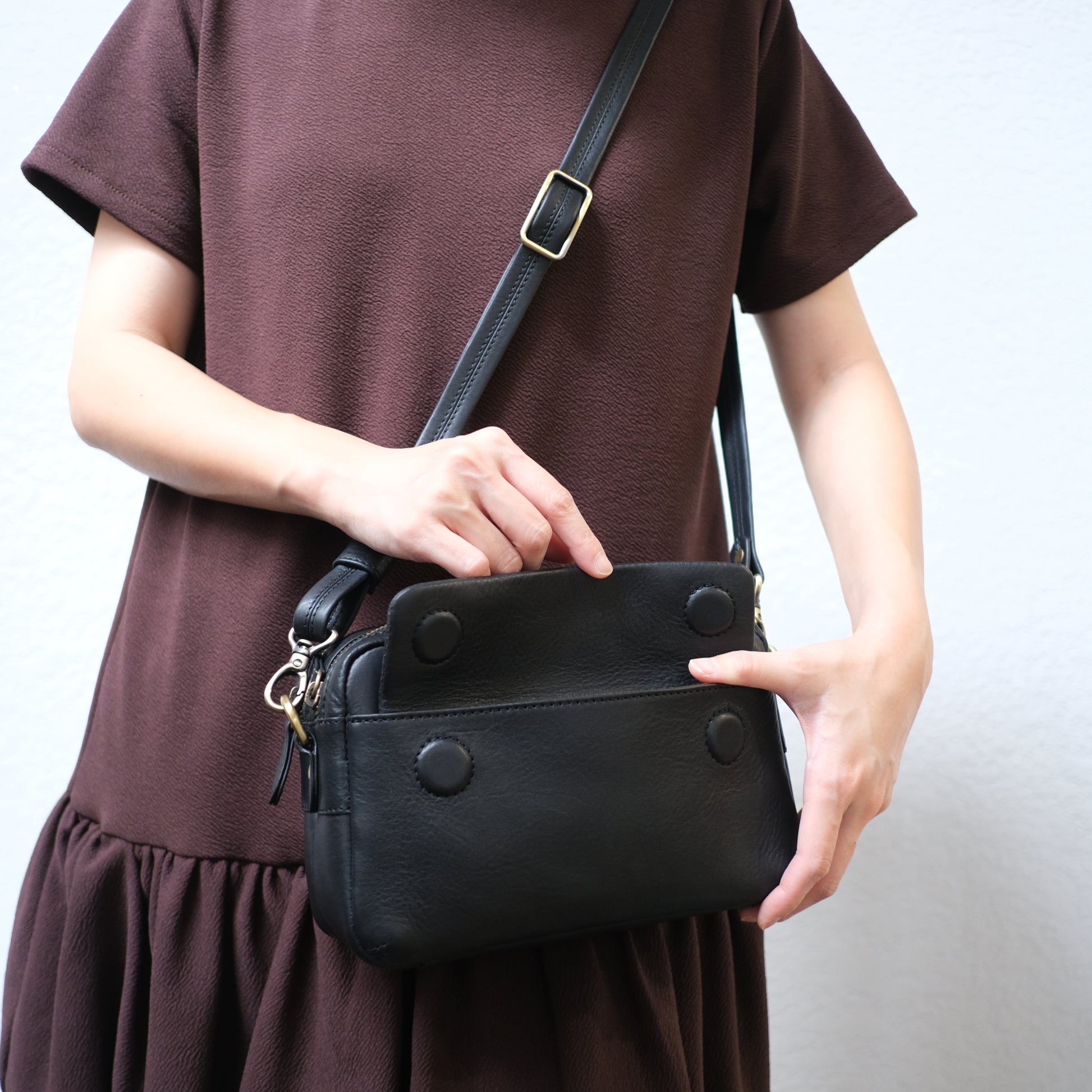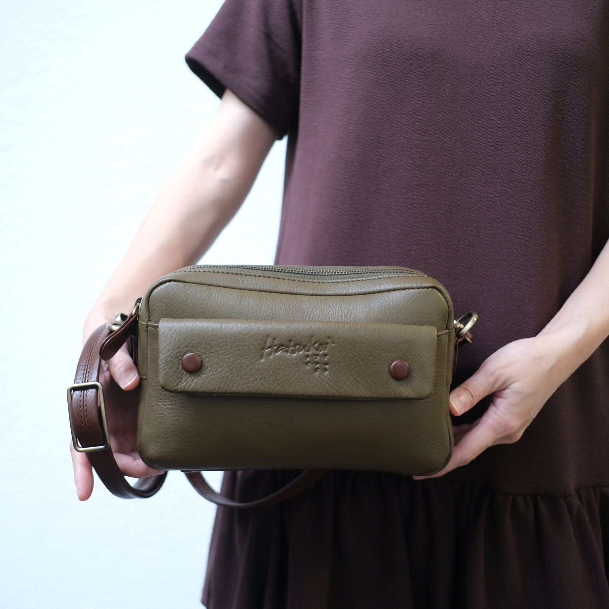 - ที่ฝากระเป๋าด้านหน้ามีดีเทลกระดุมหนัง เปิดปิดง่ายด้วยแม่เหล็กซ่อนด้านใต้ฝา