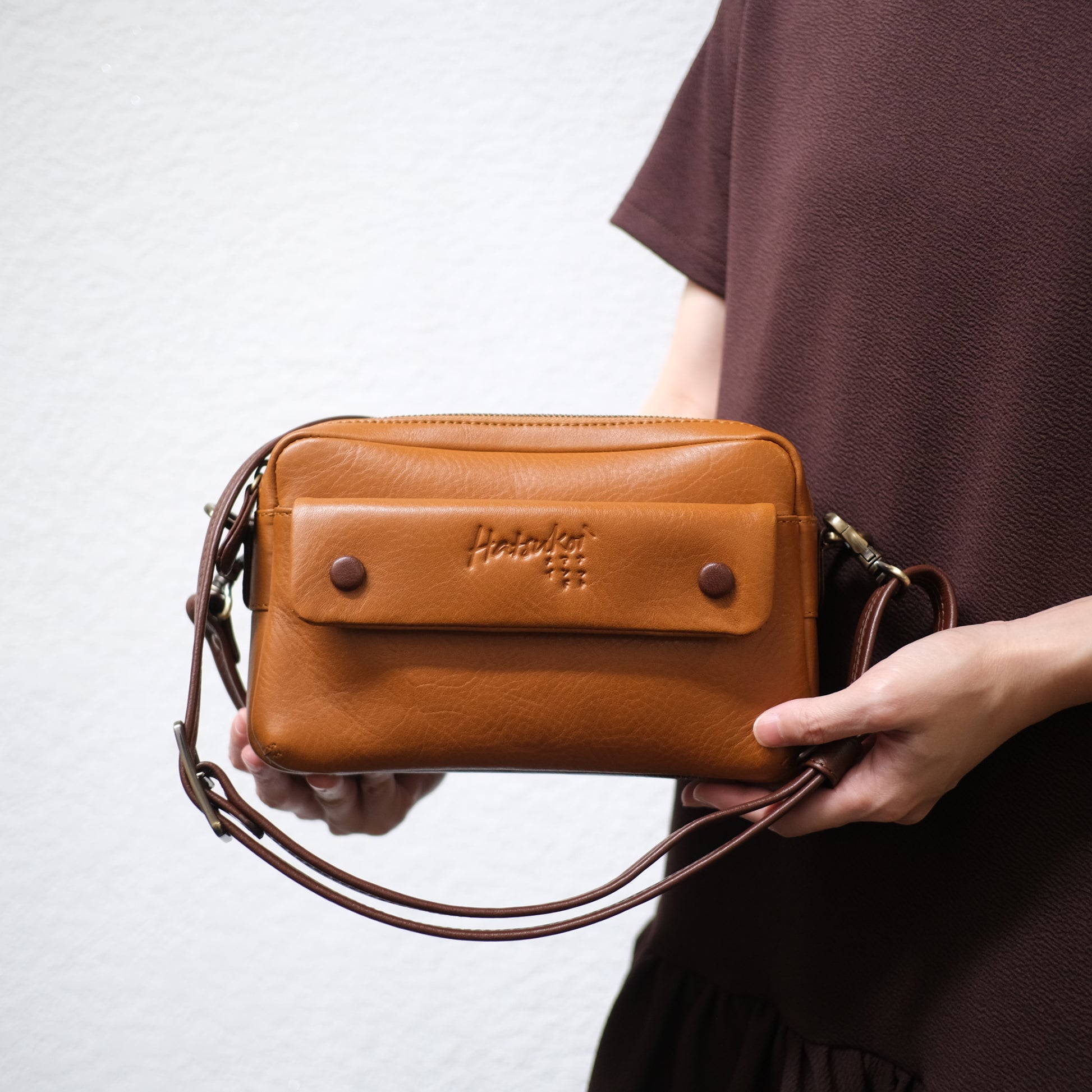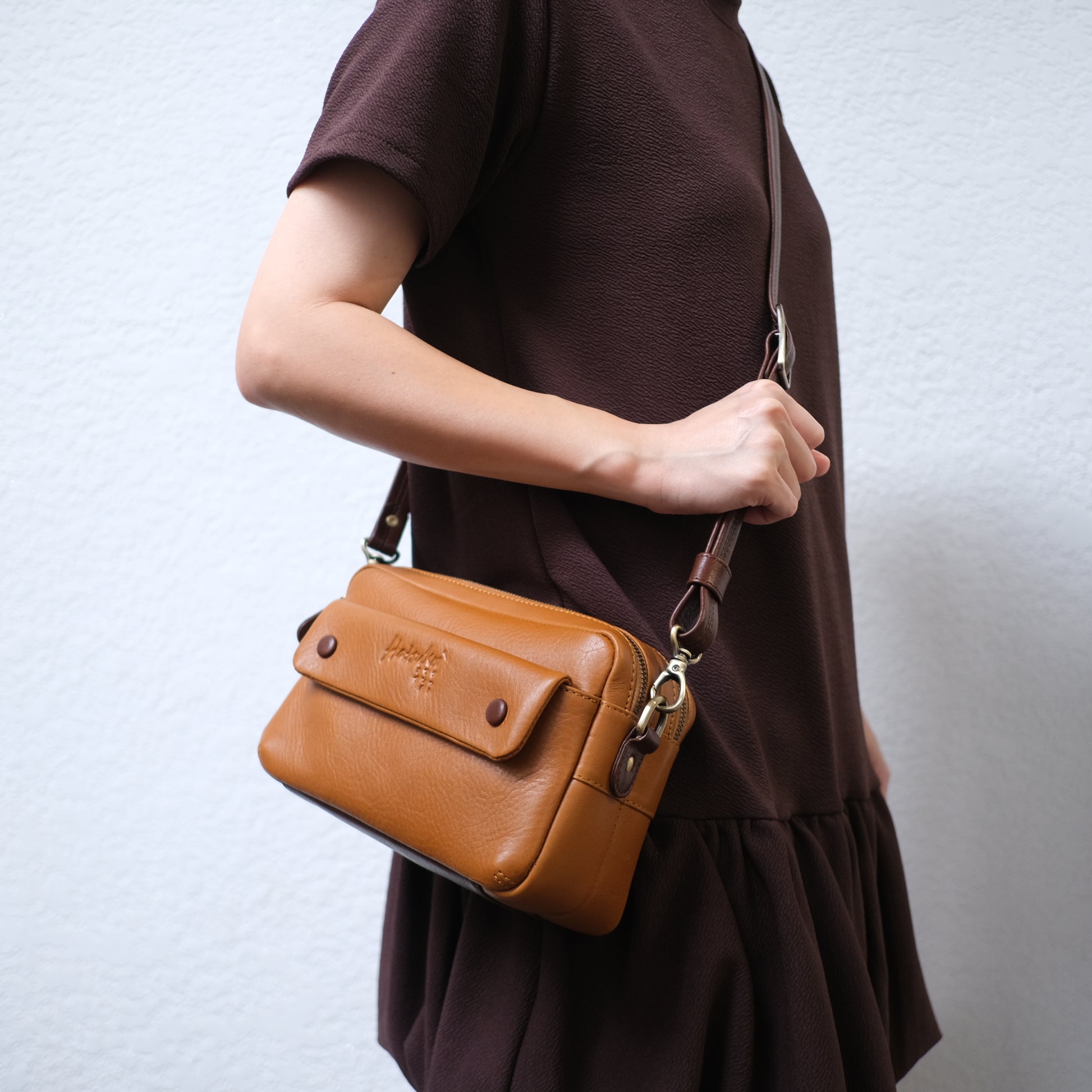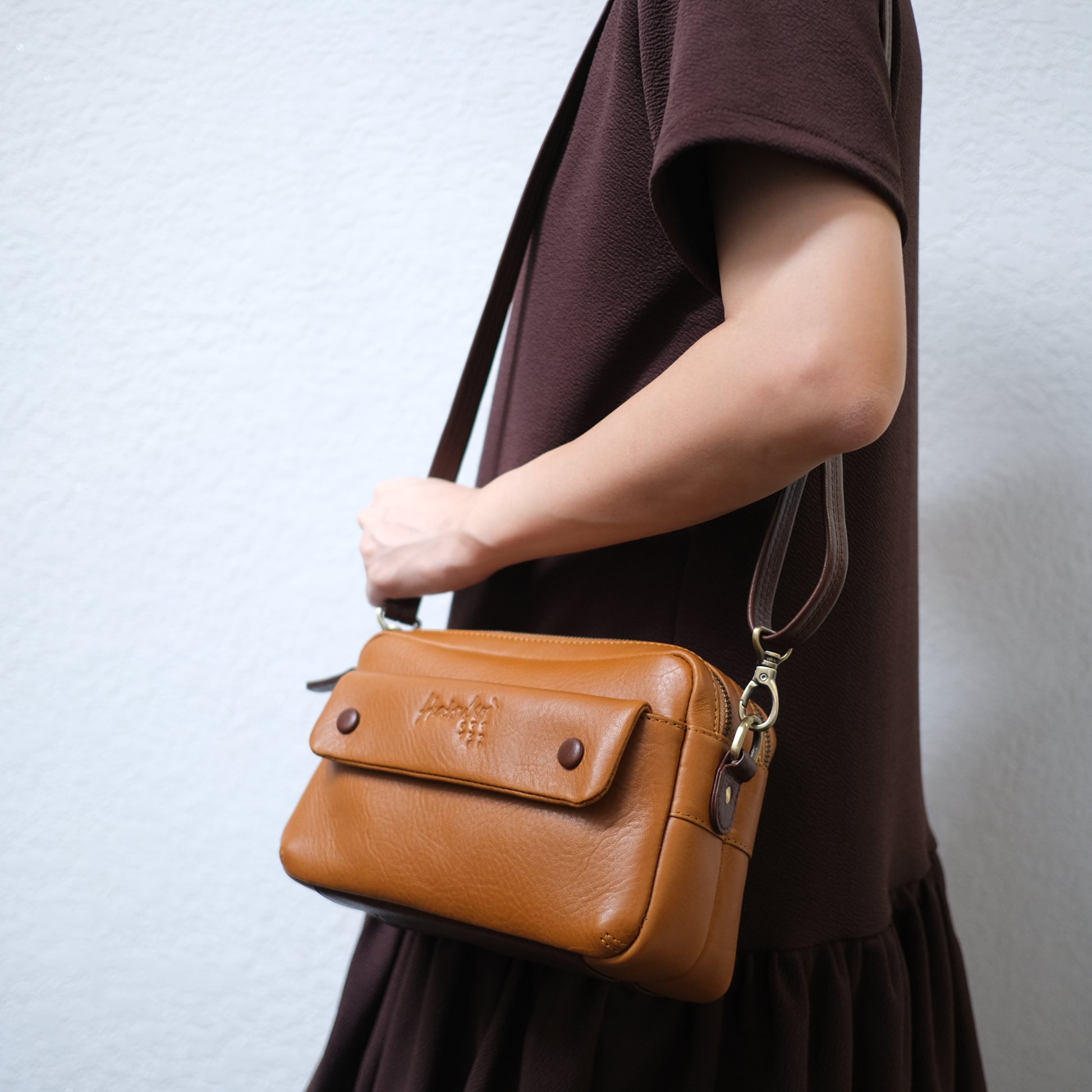 วัสดุ :: หนังวัว 100% ประเภทหนังฟอกฝาดปั่น (Vegetable Tanned Leather) ยิ่งใช้หนังจะยิ่งเข้มเงาสวยและนิ่มลงค่ะ