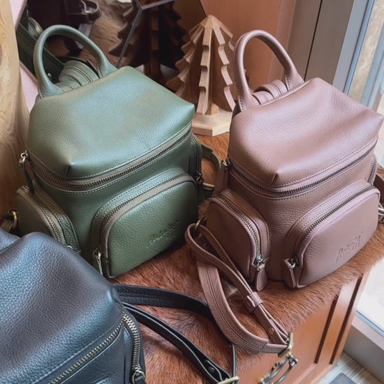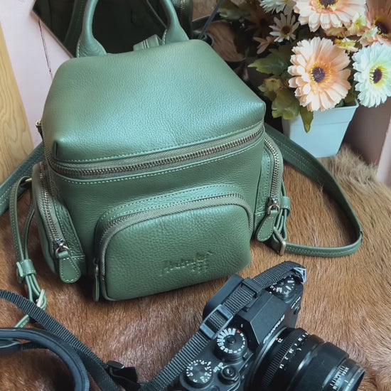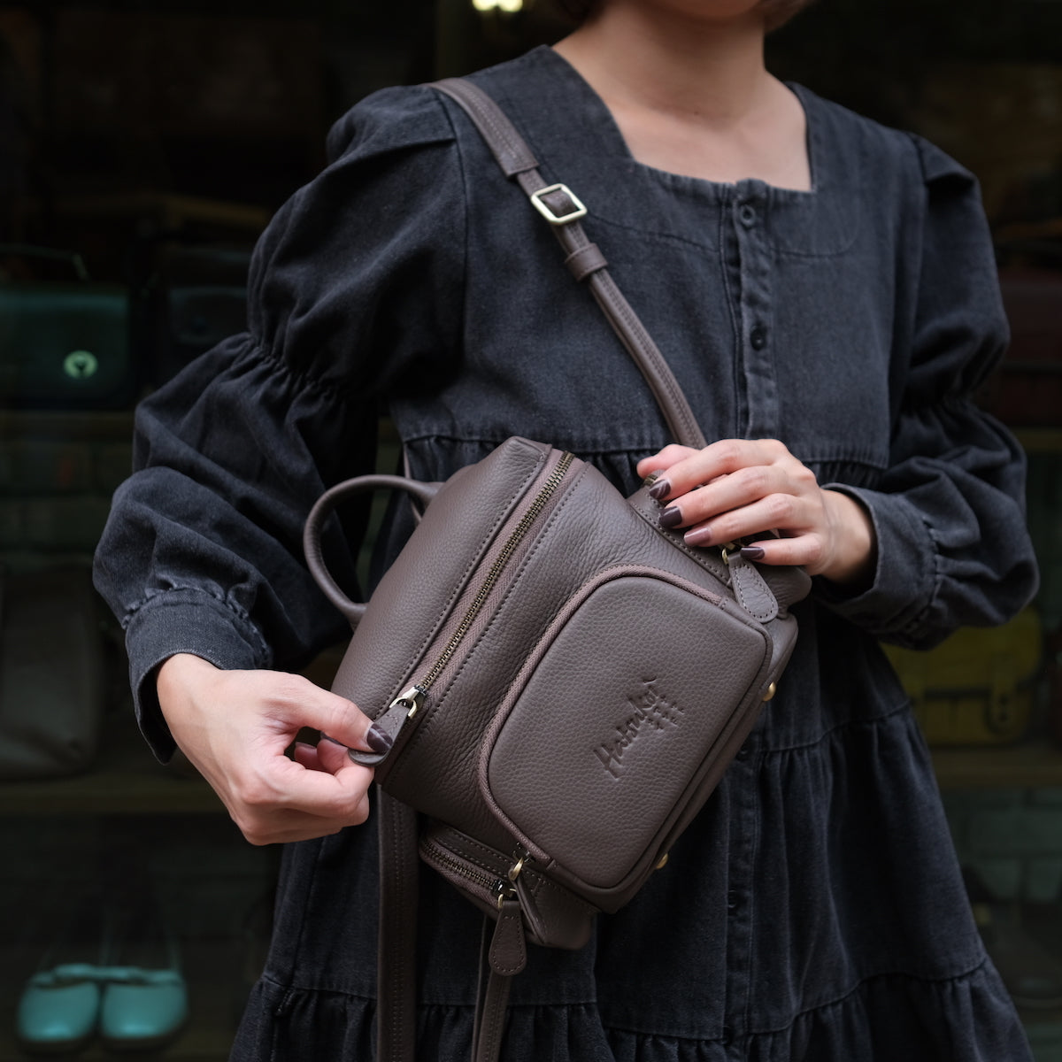 เป้สะพายหลัง หนังแท้ น้ำหนักเบา ใบเล็กกำลังน่ารัก แต่จุมาก ด้วยฐานกว้าง ช่องเก็บของกระจุกกระจิกหลายช่อง ปิดด้วยซิปทุกช่อง ปลอดภัยค่าา