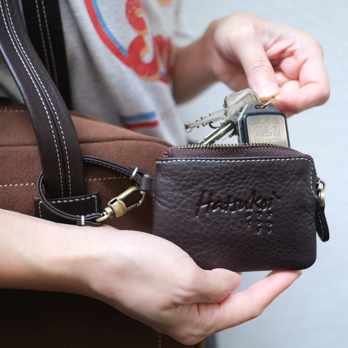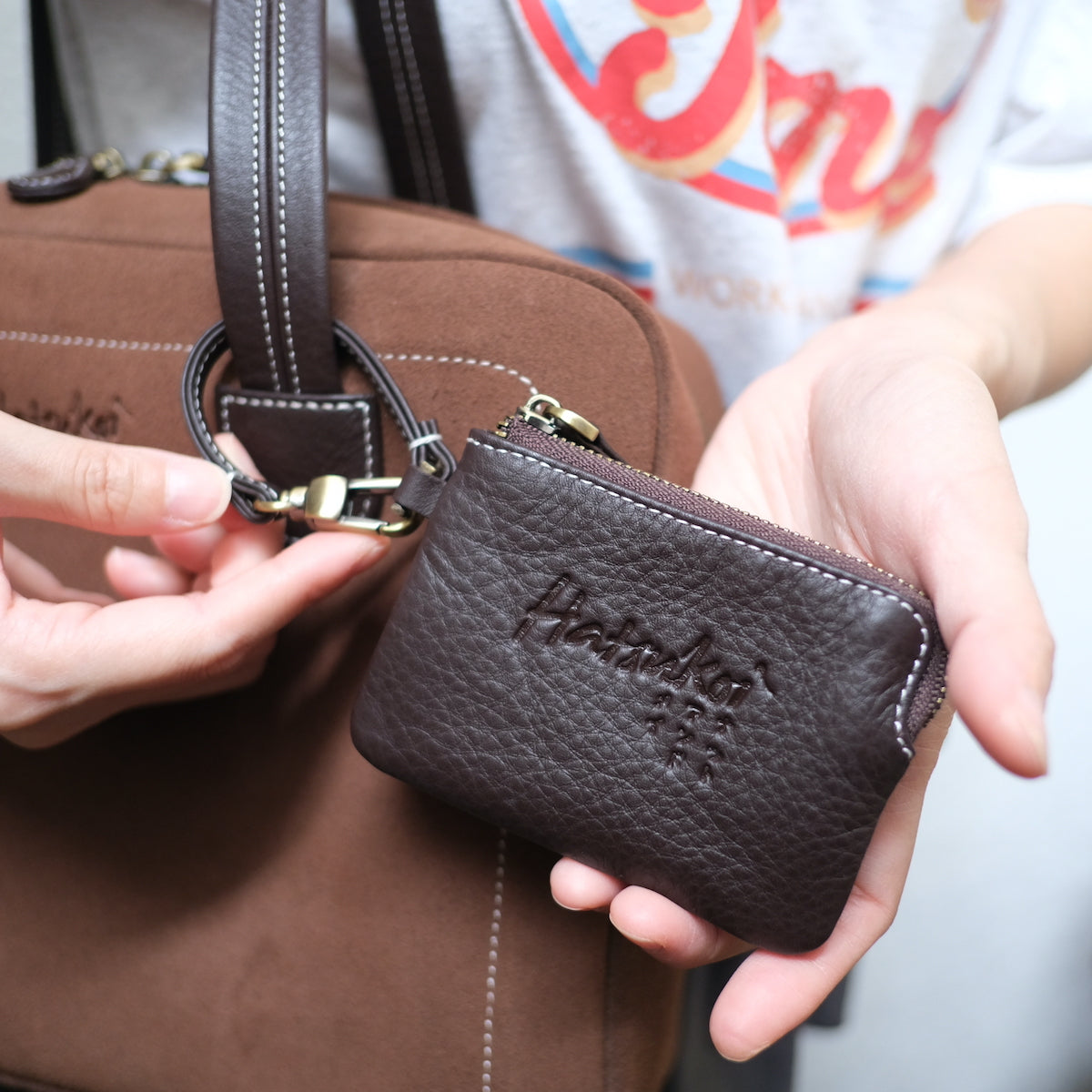 - กระเป๋ามาพร้อมสายคล้องเส้นสั้น 12 cm และตะขอ ใช้สำหรับคล้องตกแต่งกระเป๋า