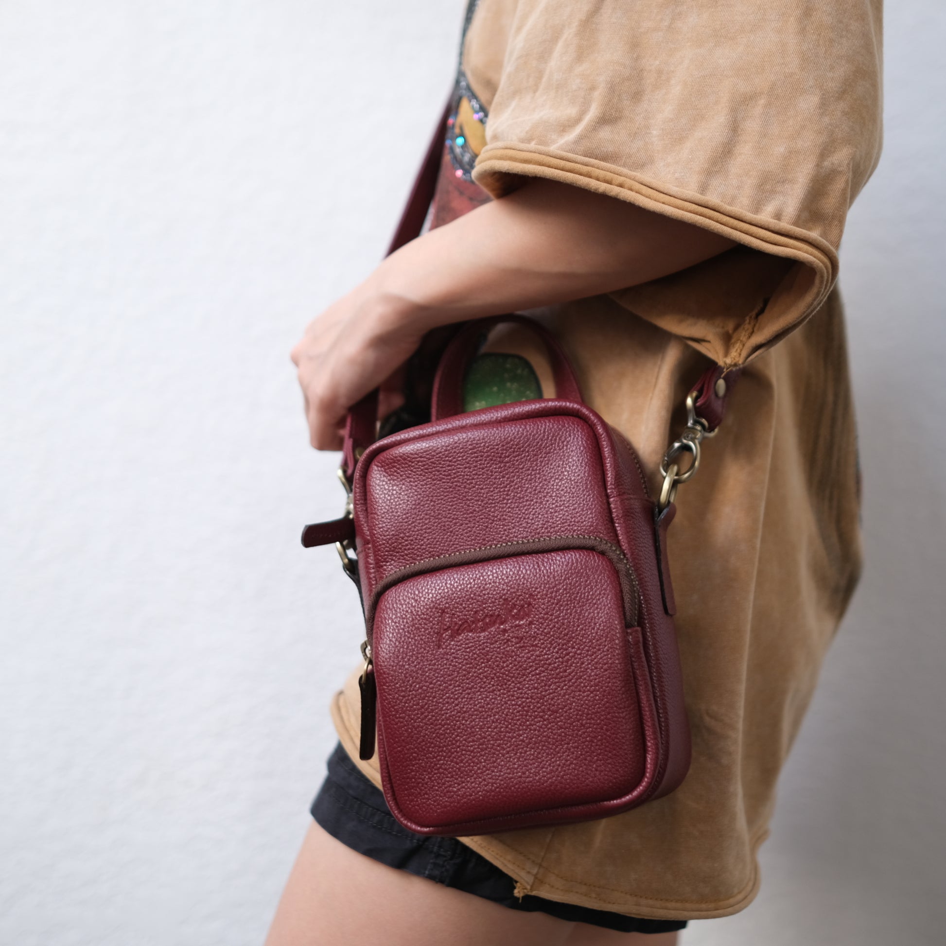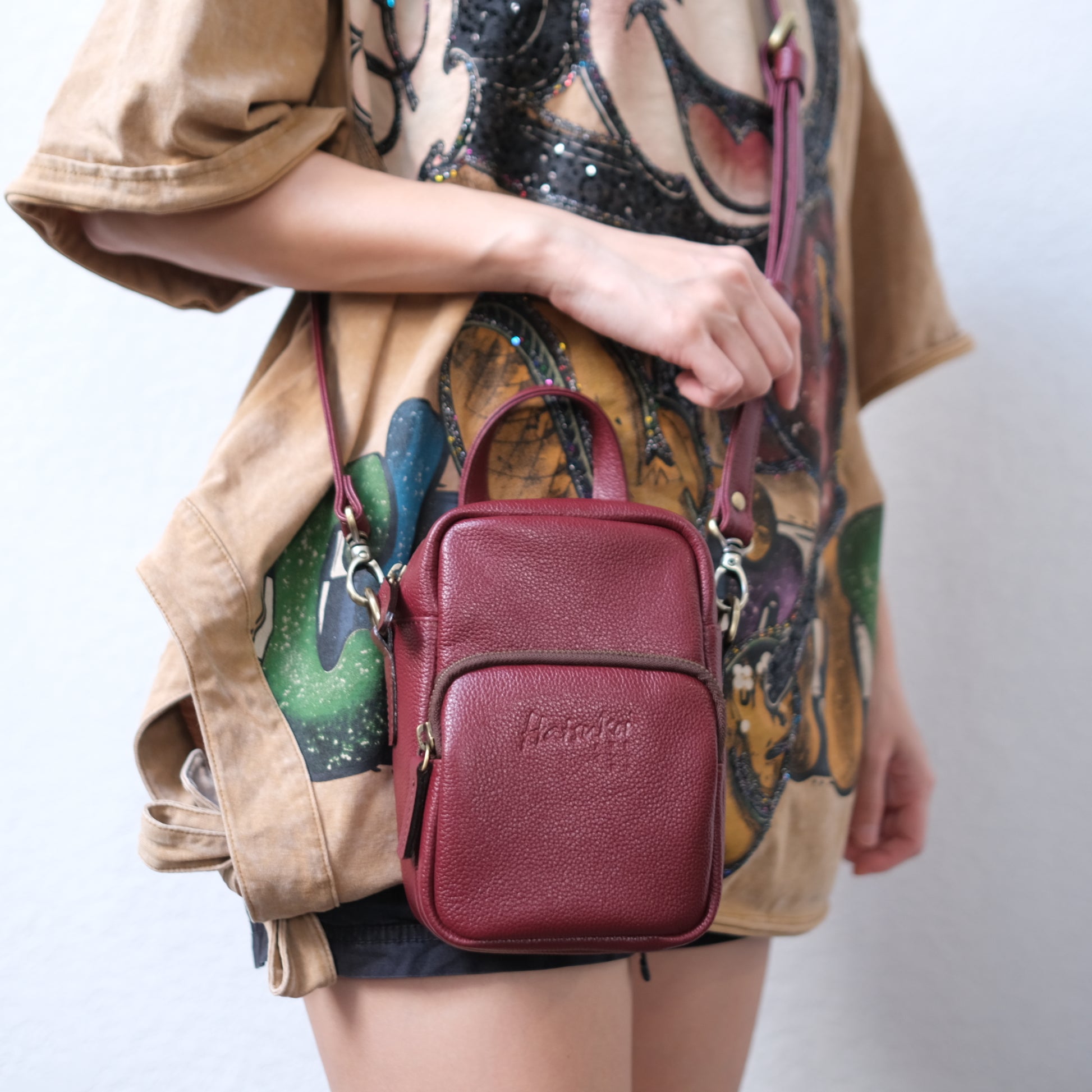 - ด้านในเป็นช่องกว้าง ใส่มือถือ ใส่กระเป๋าสตางค์ใบสั้น Passport ได้สบายๆ