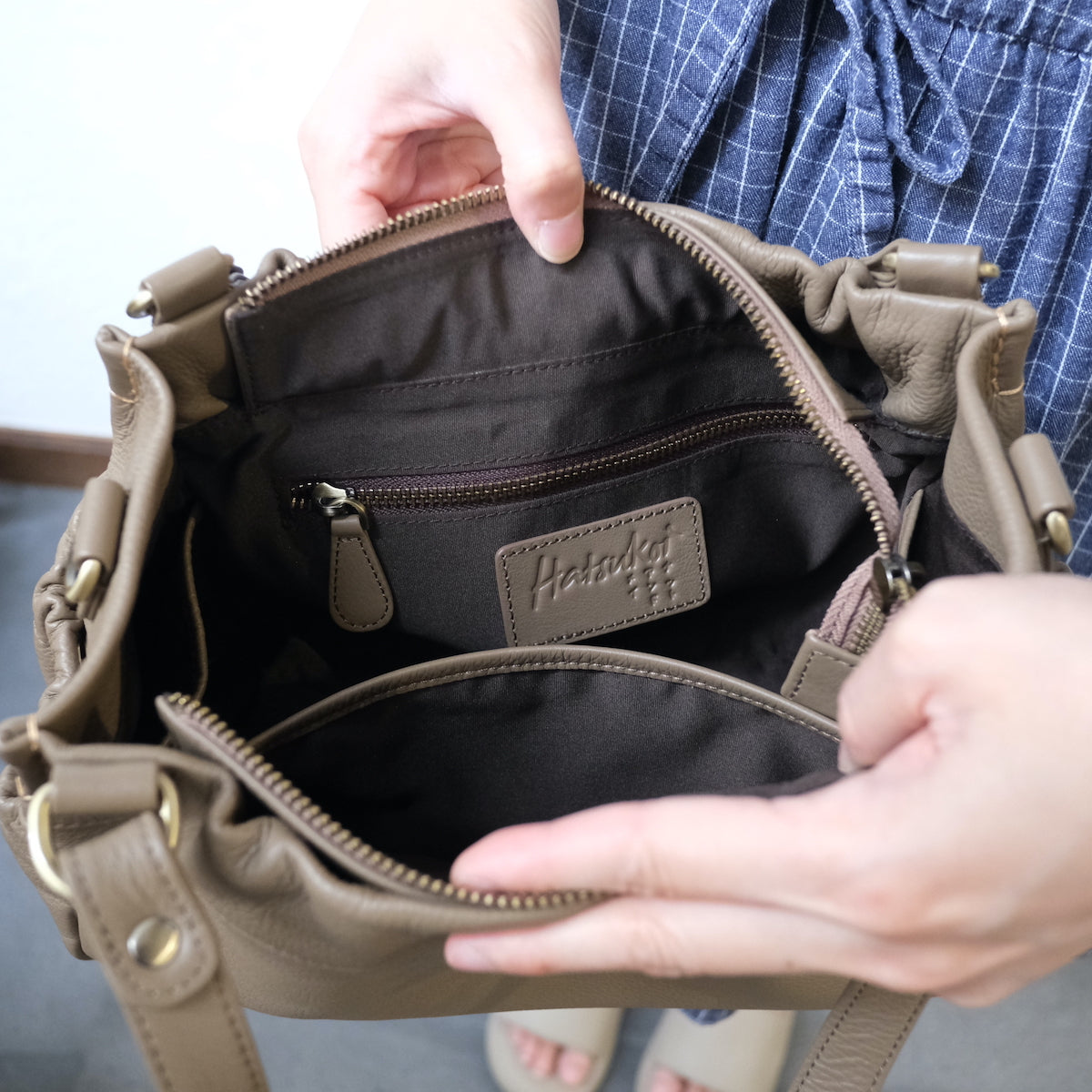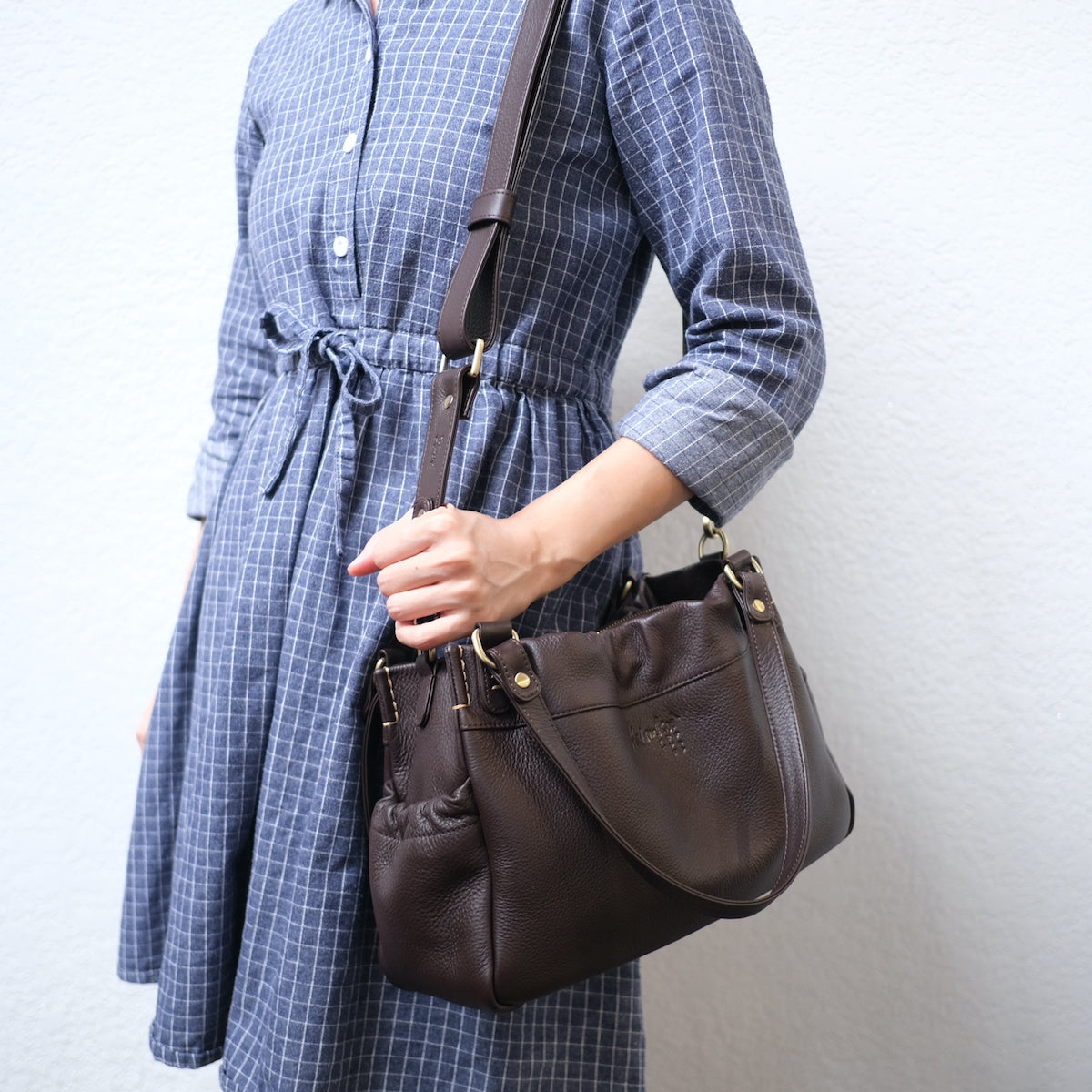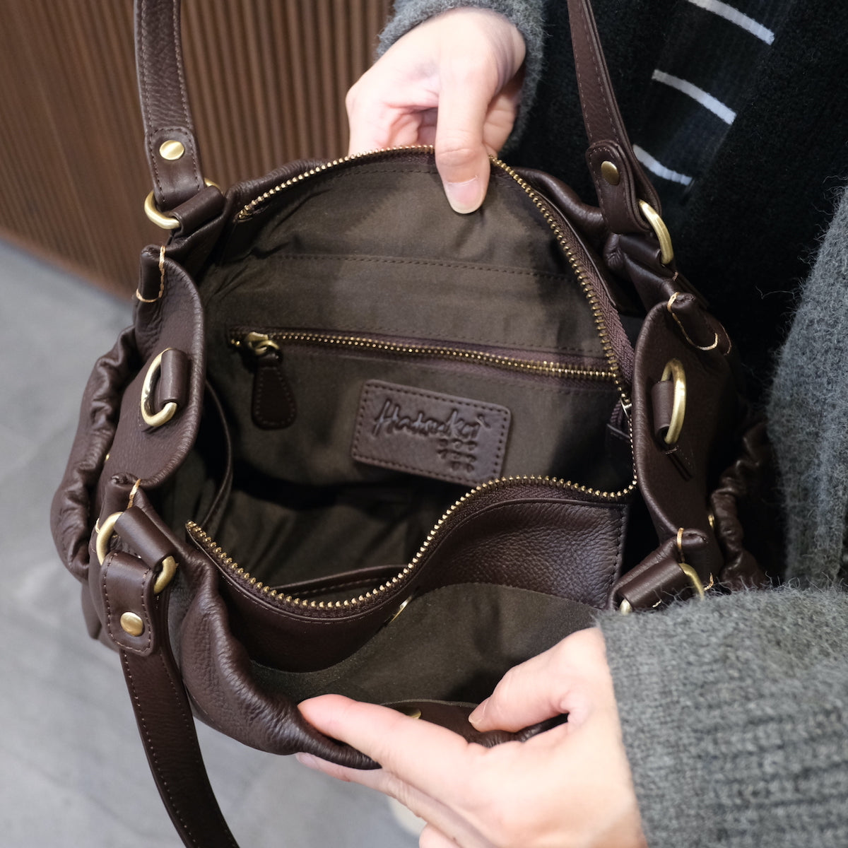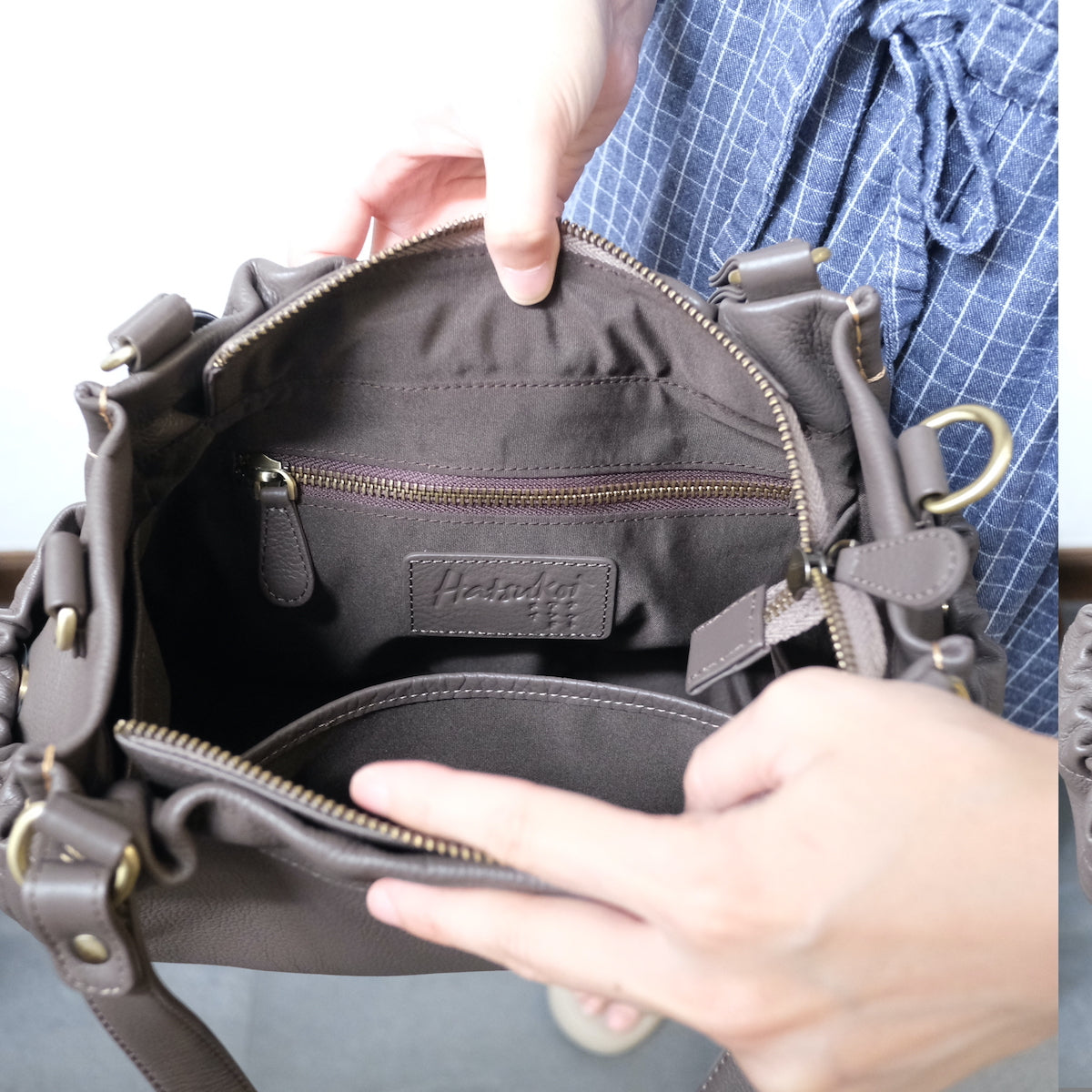 - หูสั้นของกระเป๋ามีดีเทลเย็บมือเก๋ๆ โชว์ด้ายเส้นใหญ่ได้อารมณ์ญี่ปุ่นสุดๆ ซึ่งหากไม่ใช้สายสั้น(ตอนใช้สายยาวสะพายแล่ง)สามารถเก็บใส่เข้าไปในช่องแม่เหล็กซ่อนไว้ไม่เกะกะด้วยนะคะ ใบนี้ที่ด้านบนปากกระเป๋าช่องใหญ่มีซิปปิดแน่นหนา